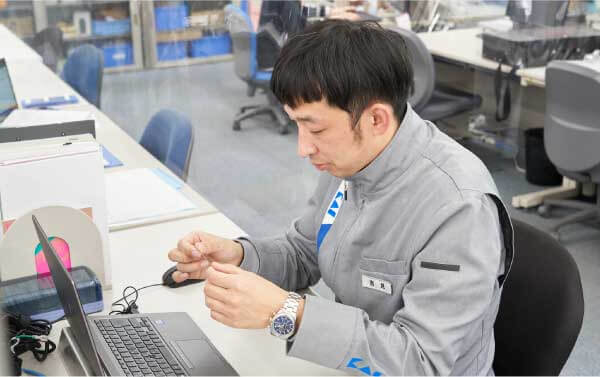 入社後は技術部に配属。まず包丁を生産する工場の生産技術を6年担当し、工場への設備導入や設備の改善、新製品の立ち上げを担当しました。その後は現在までカミソリの刃を作る工場の生産技術を担当しています。カミソリに関わるようになって、もう12年以上経ちました。